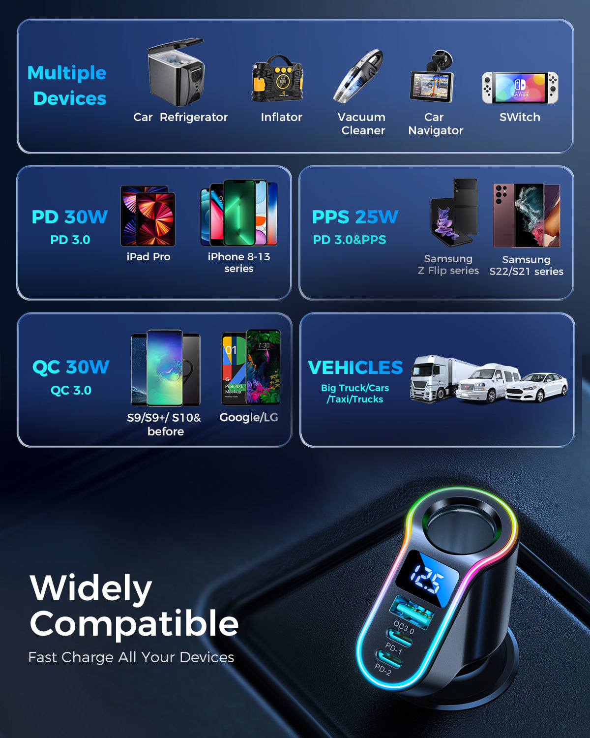 150W 四合一數顯車用充電器